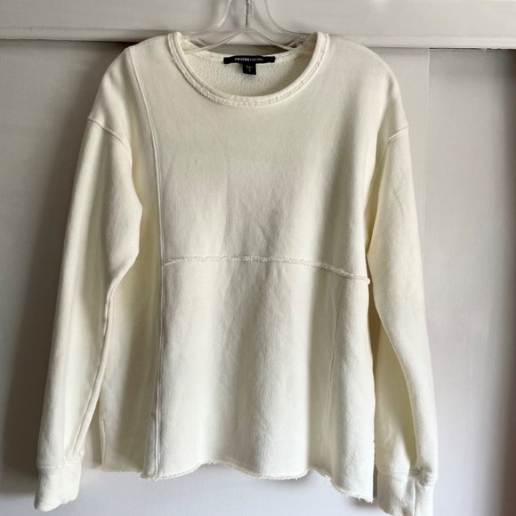 Fifteen Twenty Long Sleeve Raw Hem Top S French Terry Scoop Sweatshirt Cream