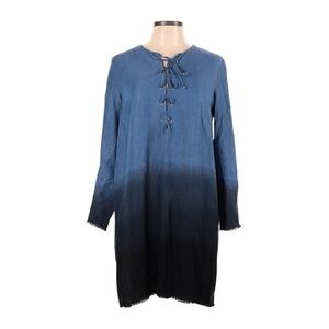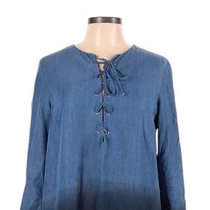 Fifteen Twenty Shift Dress Size M Blue Loose Fit Chambray Dip Dye Lace Up Chest