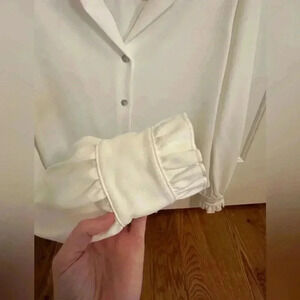 Ruffles at collar and sleeves. Excellent used condition, from a smoke free and pet free home. Ships same day or next. Bundle to save!
