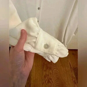 Ruffles at collar and sleeves. Excellent used condition, from a smoke free and pet free home. Ships same day or next. Bundle to save!