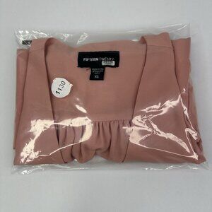 Fifteen Twenty X Rent The Runway women's size xtra small blouse, it has a tie waistline, rose pink color, v-neck, medium weight crepe fabric, sleeveless, tie front, hook and loop near chest and is slightly oversized. Care dry clean. Materials made in USA, 100% polyester. Condition preloved very good as shown in pictures. Please preview measurements to ensure fit. MFSR $132.00