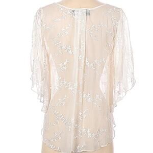 Fifteen-Twenty Ivory Sheer Nicole 100% Silk Angel Top Embroidered Floral