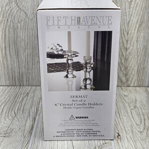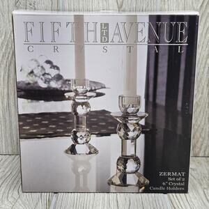 Fifth Avenue Crystal Zermat Set of 2 6" Crystal Candle Holders Elegant Decor New