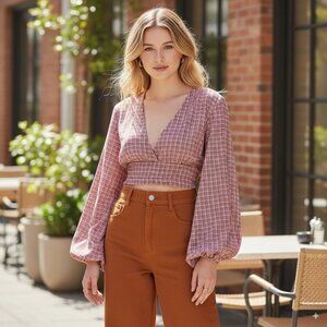 Fifth Label RADIANT LONG SLEEVE TOP PINK CHECK Size Small NWT