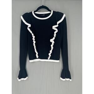 Fifth Label Revolve Sweater Womens Medium Black Ruffle White Cozy Pullover Knit