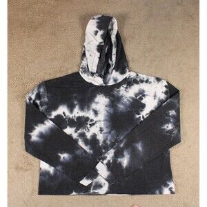 Fifth Sun Black and White Crop Tie Dye Fleece Pullover Hoodie (Large) NWOT