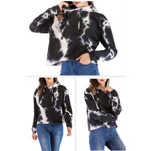 Fifth Sun Black and White Crop Tie Dye Fleece Pullover Hoodie (XS) NWOT