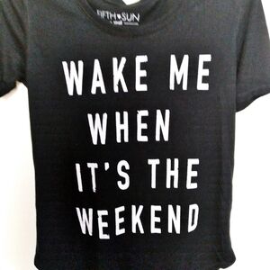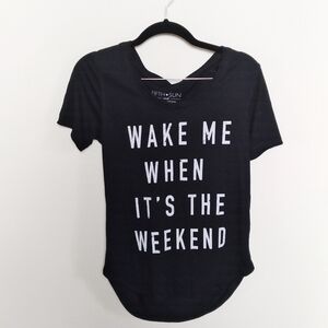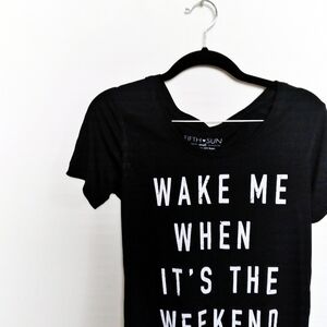 Fifth Sun black and white short sleeve crew neck "wake me when it's the weekend" graphic tee.