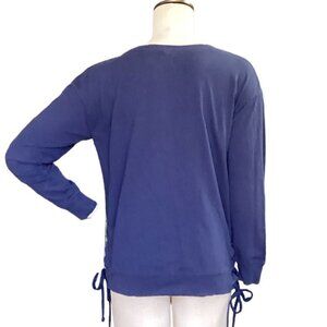Fifth Sun Keep It Sassy Graphic Sweatshirt/Tee Side Lace-up L Navy Blue #143C