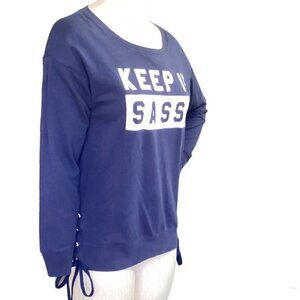 Description: Fifth Sun "Keep It Sassy" Side Lace-up Lightweight Long Sleeve Graphic Sweatshirt/Tee Shirt