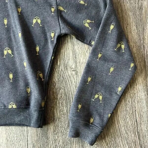 Fifth Sun Sweater Gray Holiday Cheers Champagne Cropped Sweatshirt Size Medium