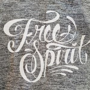 FIFTH SUN WOMEN'S HIGH-LOW SWEATER SIZE XS GRAY FREE SPIRIT GRAPHIC LONG SLEEVE