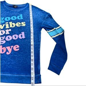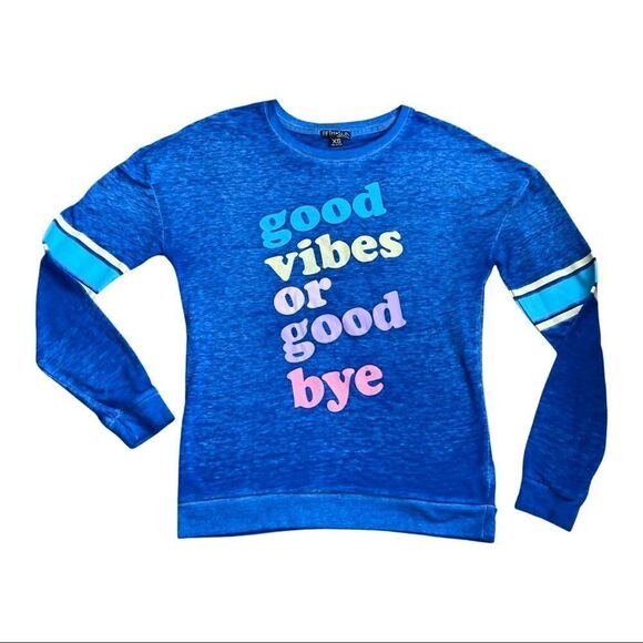 FIFTH SUN Women’s Blue Burnout “Good Vibes or Goodbye” Long Sleeve T-shirt.