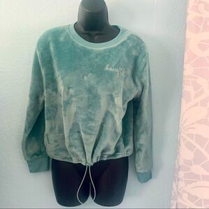 Cute Seafoam green plush fleece pullover long sleeve shirt. Round neckline. Adjustable pull cord waist. Have Faith graphic on chest. Super soft & cozy polyester fabric. In excellent used condition. This is actually a sleep shirt. Fifth Sun Size XS