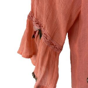 Fig And Flower Anthropologie Women’s Large Blouse Orange Embroidery Flowers Boho