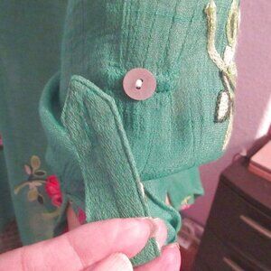 Fig And Flower Embroidered Gauze Top Size M Tunic Button Up Light Sheer Boho