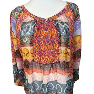 Fig And Flower Women's Multicolor Mixed Media Bohemian Blouse Medium Sheer EUC