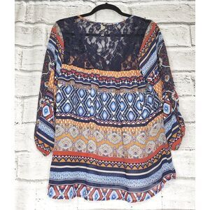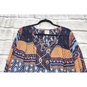 Fig And Flower Anthropologie Multicolor Womens Large Boho 3/4 Sleeve Tunic