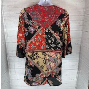 Fig & Flower ANTHRO Large peasant dress patchwork black red floral boho fall