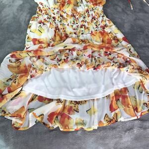 Fig & Flower Anthropologie Floral Chiffon Dress Size 2X 3/4 Sleeve Midi Flirty
