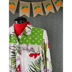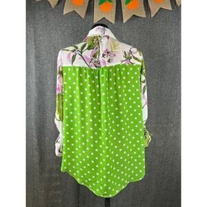 Fig & Flower Anthropologie Green Polka Dots & Multicolor Floral Print Blouse 1X