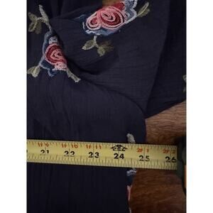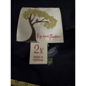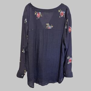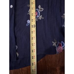 Fig & Flower Anthropology Navy Blue Floral Gauzy Tunic Button Up Blouse Size 2X