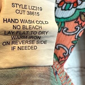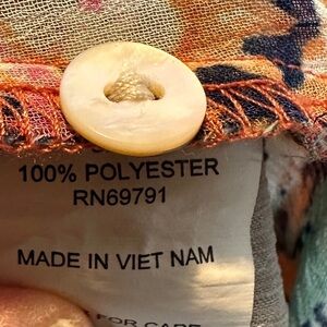 chest flat 21.5", length 26", sleeve measured under arm 12.5", sheer material, there is a button missing on the front top (see photo) there is a replacement with the inside tag, otherwise good used condition