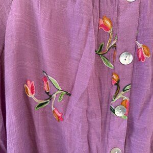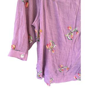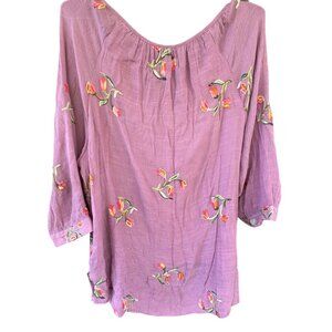 Fig & Flower Anthropologie Top Plus Size 3XL Dusty Plum Floral Embroidered Tunic