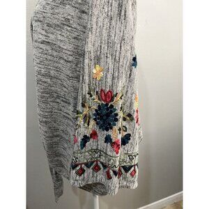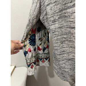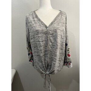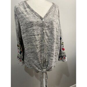 Fig & Flower Blouse Women 2X. Embroidered 3/4 Sleeve Bell Sleeve Gray Knit