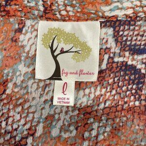 Fig & Flower Blouse Women's Size Large Snakeskin Pattern Henley Neck Casual