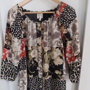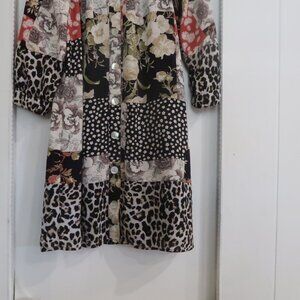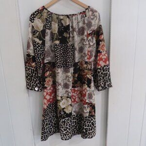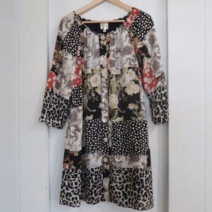 Fig & Flower Boho Patchwork Button Front Dress Medium Floral Animal Print