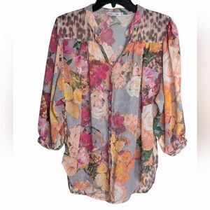 Fig & Flower Cecelia Floral Animal Mixed Print Chiffon Blouse Top Women's M