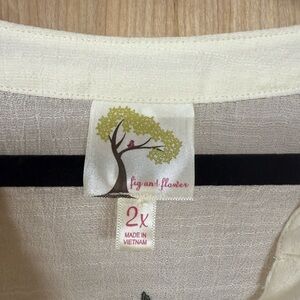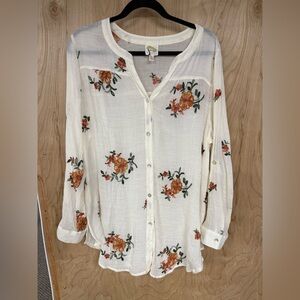 Fig & Flower Long Sleeve Button Up Shirt Size XXL White Floral Embroidered