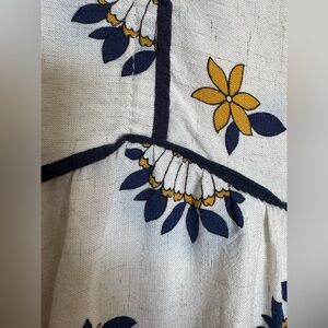 Good condition. Beautiful design ! There is some bleeding around the blue flowed which is shown in picture. I feel like it just blends in with dress.
