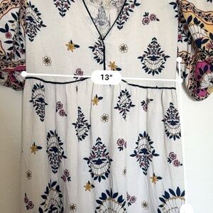 Fig & Flower Pippa Ivory Floral Puff Sleeve Belt Midi Dress sz S