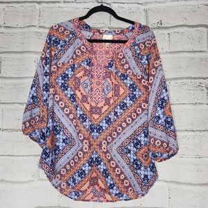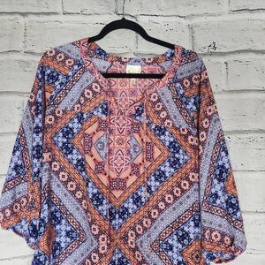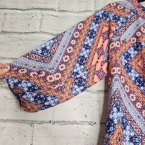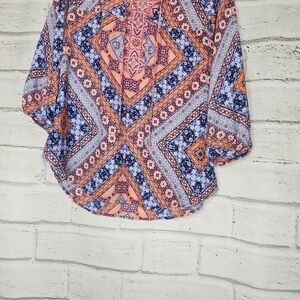 Fig & Flower Scoop Neck Long-Sleeve Pullover Tunic Blouse Multi-Color Medium