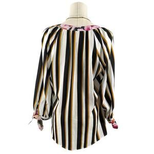 Fig & Flower Striped Floral Blouse | Mixed Print Boho Top | Size Small