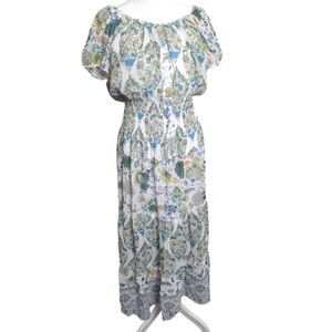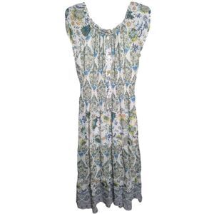 Fig & Flower White & Blue Multi Short Sleeve Smocked Tiered Dress Sundress XL