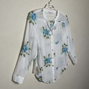 Fig & Flower White Sheer Gauze Button Up Blouse Floral Embroidery Boho Sz PL