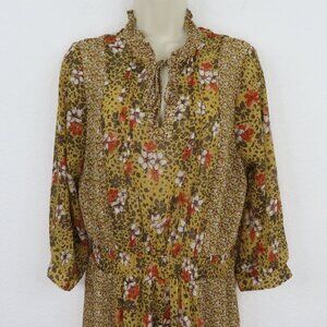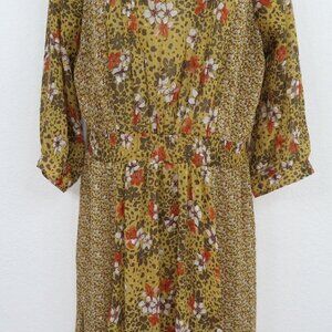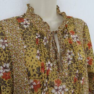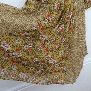 Fig & Flower Women Large Floral Flower Long Sleeve Sheer Tunic Dress Boho Chic