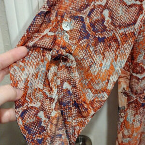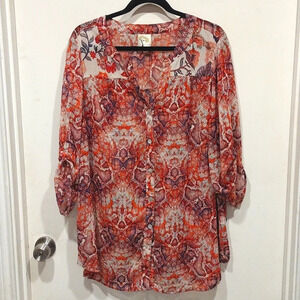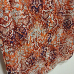 Fig & Flower Women's Mixed Print Semi-Sheer Button Front Top 2X-Snake & Floral