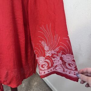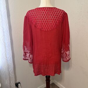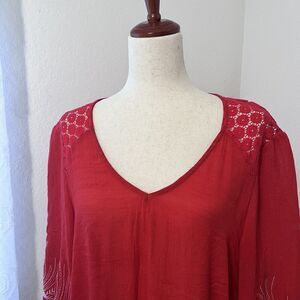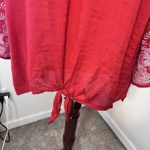 Fig & Flower Womens Peasant Top Size 2x Red Embroidered V Neck Lightweight Boho