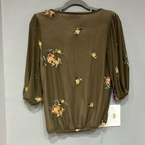 Fig & Flower floral embroidered 3/4 sleeve blouse size S BIN F