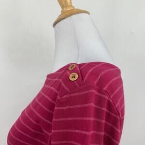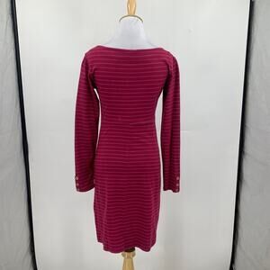 Fig Voyage Dress Womens Small Raspberry Boat Neck Striped Button Detail Stretch