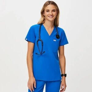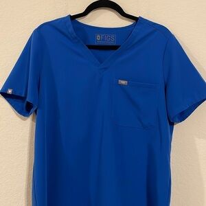 Fig Women Scrub Top Large Blue Catarina One-Pocket Technical Collection Spandex