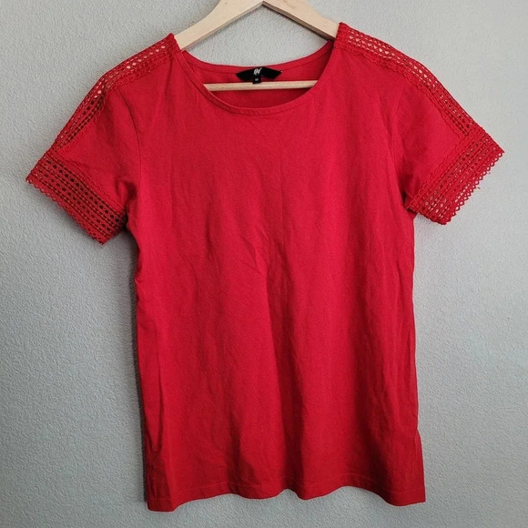 Fig Womens Short Sleeve Eyelet Cotton Top Size Medium Coral Red Detailed Trim Casual, Business Casual, Office, Spring