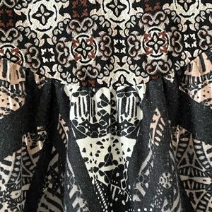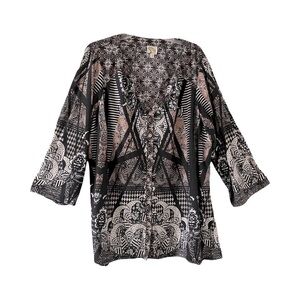 Fig and Flower | Black Boho Mixed Print Button Front V-Neck Top, 3X