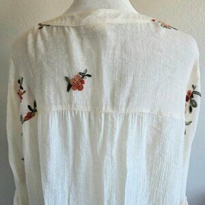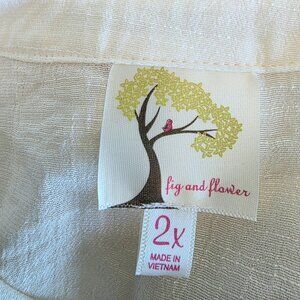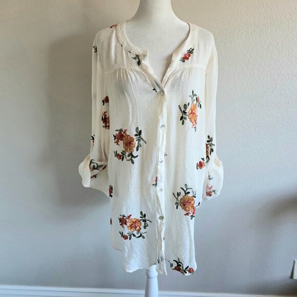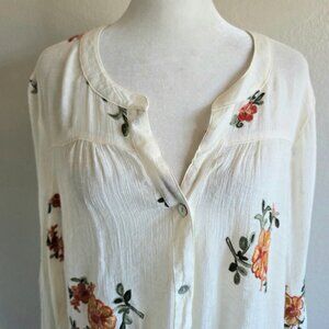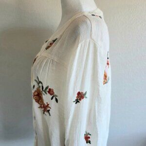 Fig and Flower Blouse Top Plus Size 2X 1X Floral Embroidered Semi Sheer Crinkle
