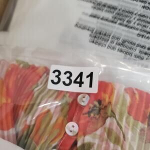 Lightweight sheer pleated fabric with vibrant red, orange, and green floral print