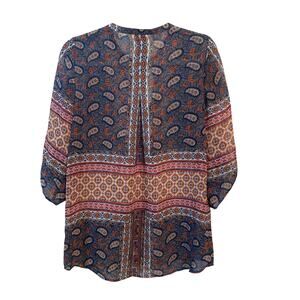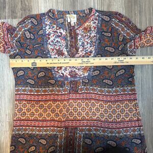 Fig and Flower Blue Orange Paisley Boho Tunic V-Neck Women’s Size Small